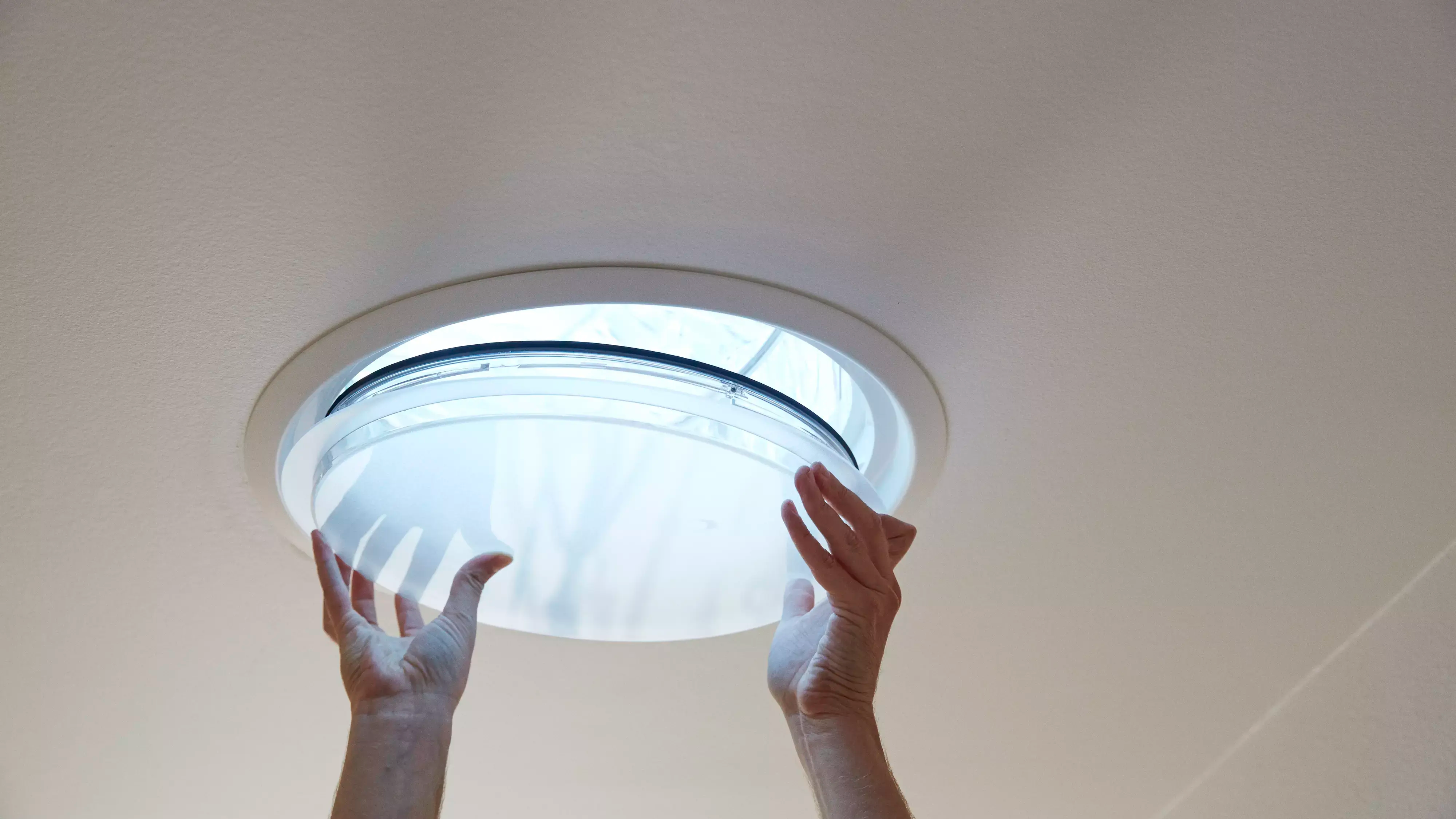 Ako vaš svetlosni tunel ima unutrašnji plafonski prsten, morate ukloniti poklopac jednostavno ga kliknuvši, pomerajući male kopče u otključani položaj, i difuzorsko staklo će moći da ispadne iz difuzora.
